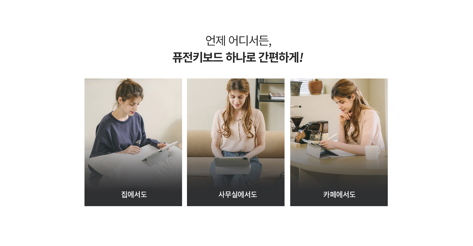 별도의 마우스와 터치패드가 필요 없는 퓨전 키보드는 여러분의 가방을 가볍게 만들어드립니다. 작은 가방에 쏙 들어가면서 예쁜 가방의 모양이 불룩하게 망가지 않도록 얇고 가벼우면서 단단한 퓨전 키보드입니다.