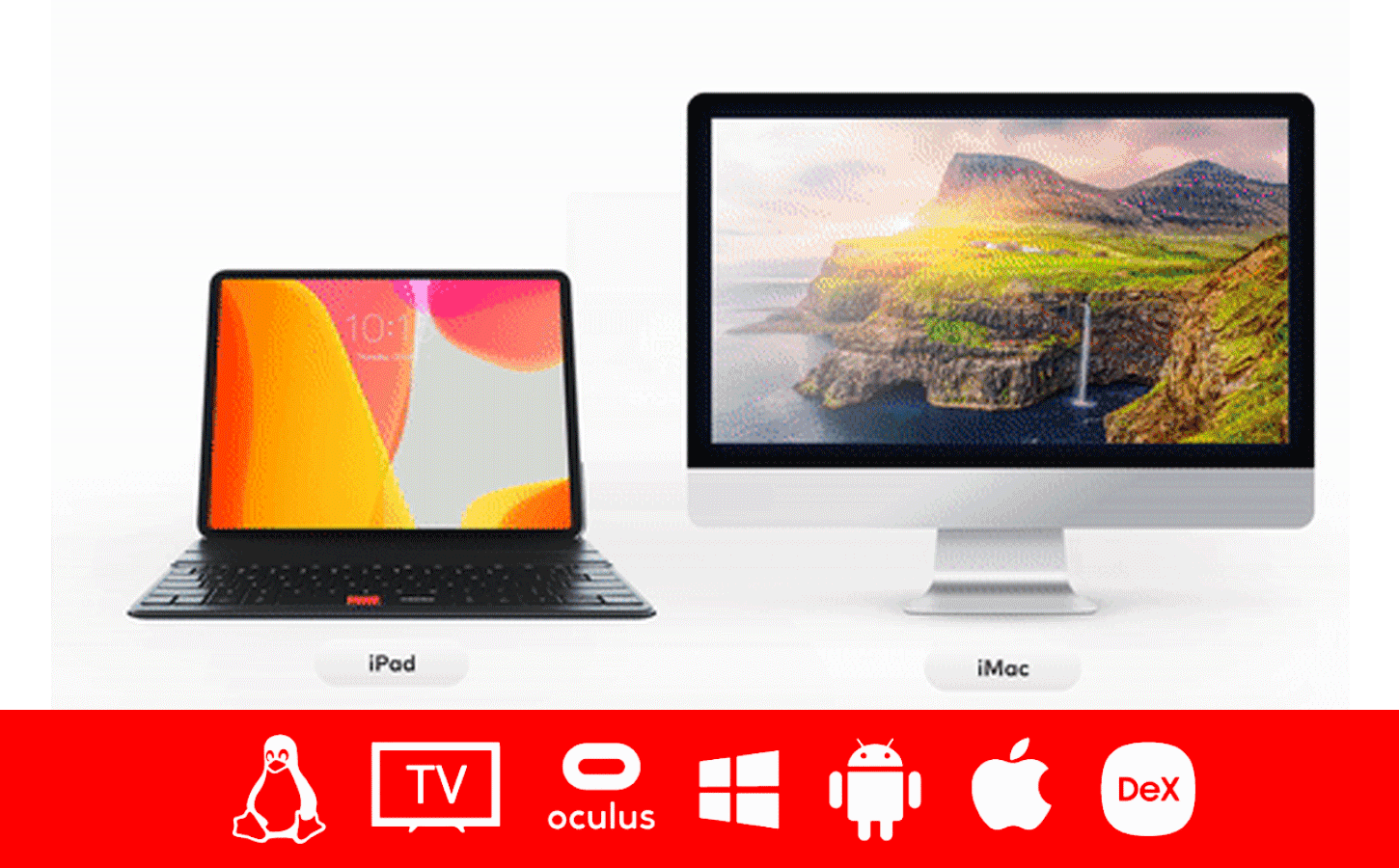 It supports iPad, iPhone, MacBook, Windows, Android, and Linux, with customized settings available for each operating system.