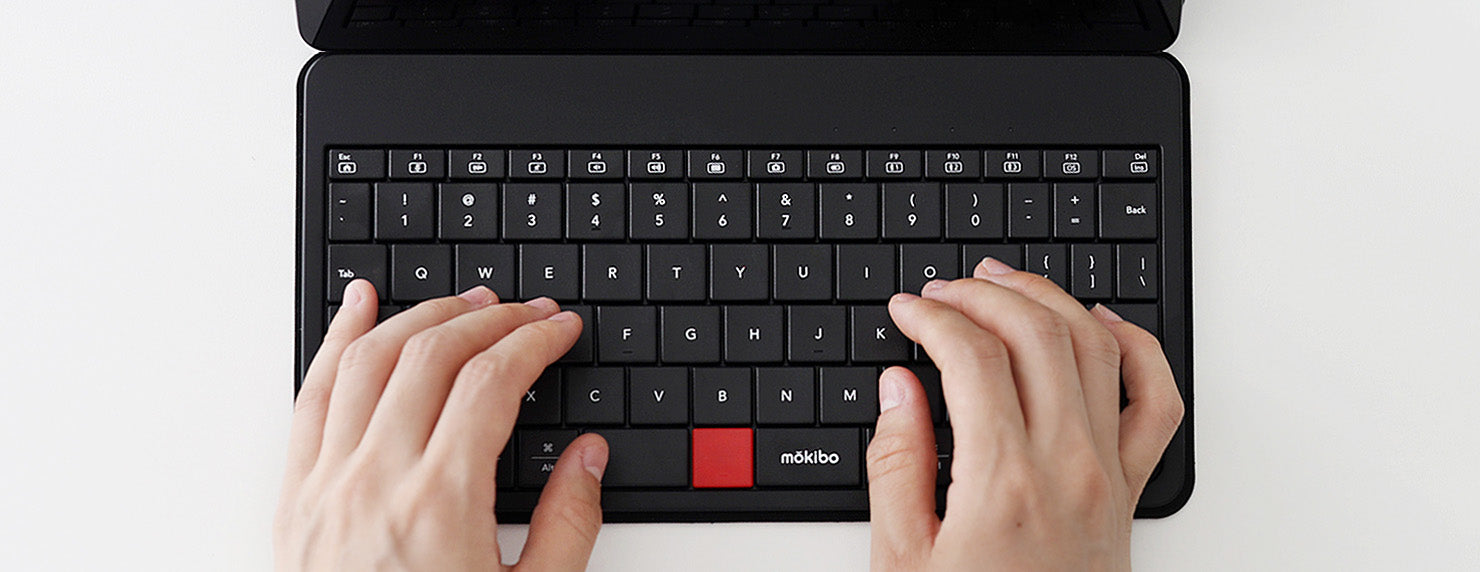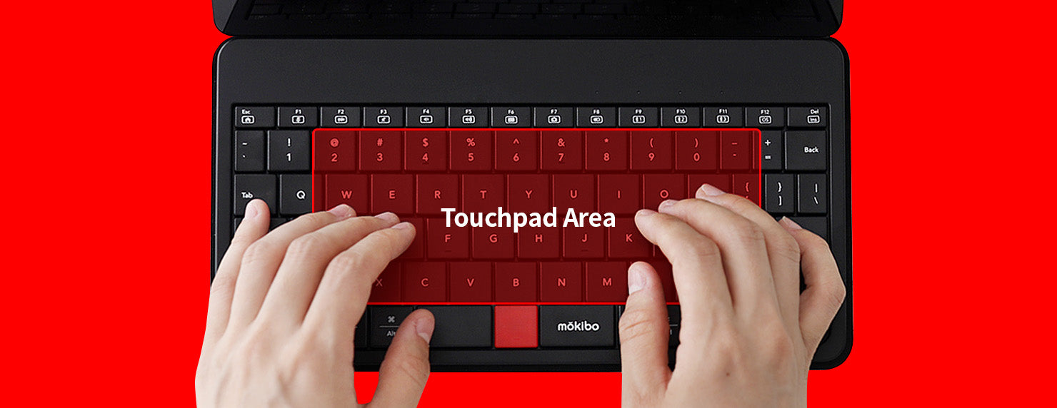 Mokibo is a full-size keyboard in which the keyboard surface also functions as a trackpad. Your fingers don't have to leave the keyboard to move the mouse cursor.