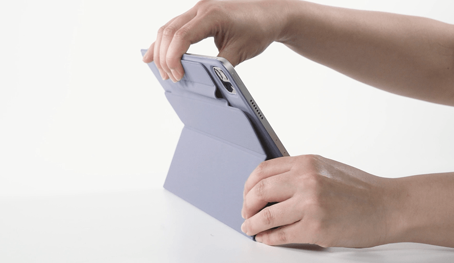 The Mokibo FreeAngle Cover is made of a smooth yet durable material that is resistant to scratches, wear, and stains.The lining also provides a soft and gentle touch to further protect the pad. The camera hole of the Mokibo FreeAngle Cover is made of steel to reduce the risk of damage and ensure durability for long-term use. It provides initial protection by allowing a 2mm margin at the edges. This extra space offers an additional layer of protection for the pad in various environments.