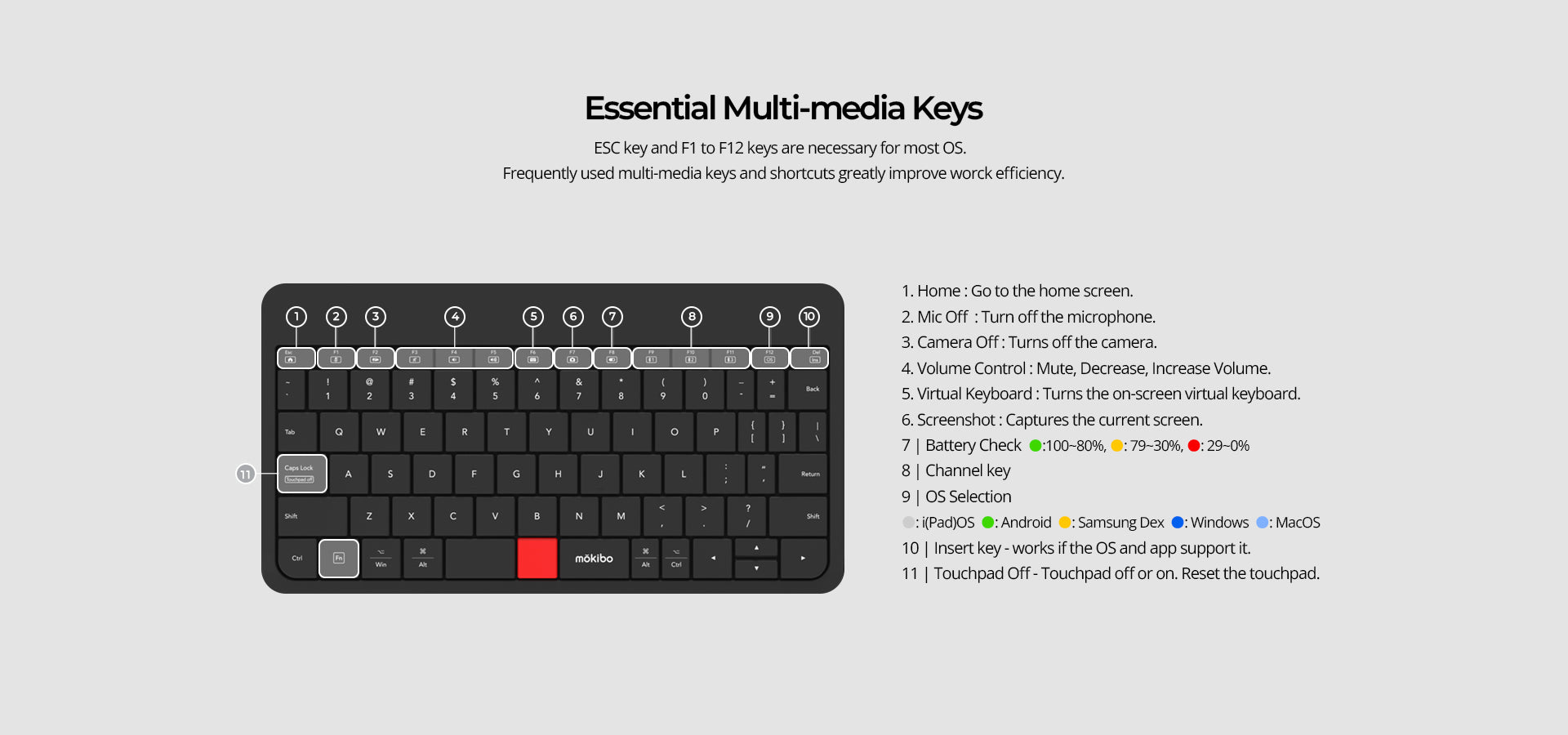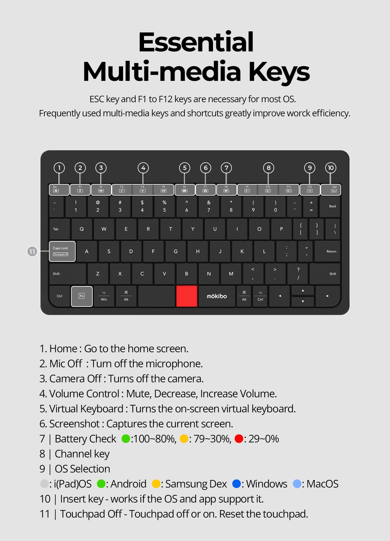 It supports OS-specific gesture control functionality, rather than just simple touch input keyboards. It supports multi-gestures ranging from 2-finger to 4-finger touch gestures, tailored for each operating system. All gestures operate by transmitting keyboard shortcuts.