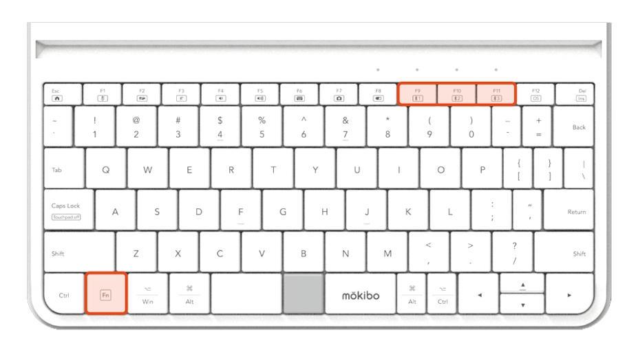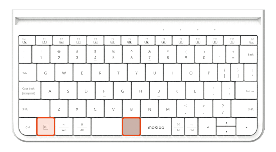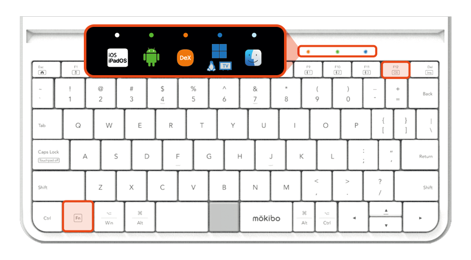 -同時按住 Fn 鍵,短按 “OS 選擇鍵(F12)” 直到 LED 顯示出適合您的智慧型裝置的正確顏色。