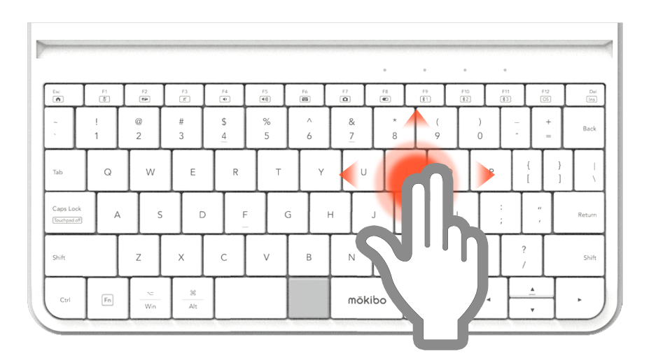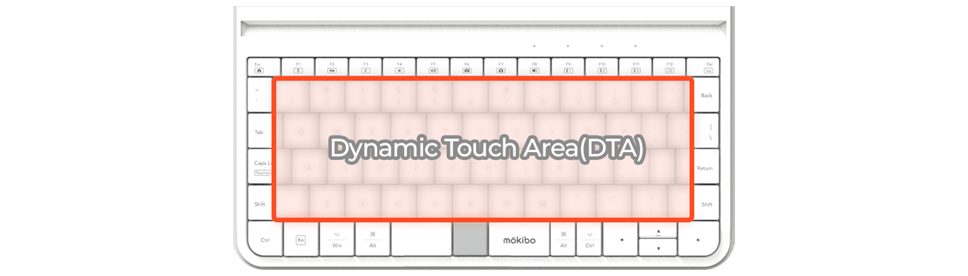 -當您左手從鍵盤上移開,右手指觸摸區域的邊界時,觸摸區域將自動擴展到整個鍵盤。